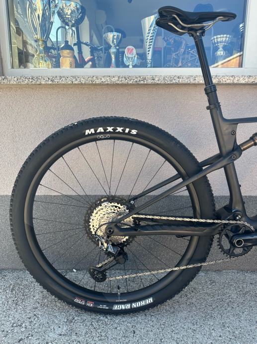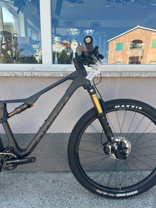 Orbea Oiz M PRO okvir je izrađen od OMX najboljeg Orbea karbona. Dolazi sa FOX 34 FACTORY Kashima zračnom vilicom sa 120 mm suspenzije, sa FOX FLOAT FACTORY stražnjim amortizerom također sa 120 mm suspenzije, sa kombinacijom Shimano XT/XTR 1x12 pogonskih komponenti te Shimano XT hidrauličnim disk kočnicama za pouzdano zaustavljanje u svim nepredvidivim situacijama. Integrirani bužiri i ugrađena dropper cijev sjedala. Za što bolju udobnost brinu se brze Maxxis Rekon Race 29x2.40'' gume montirane na čvrste i lagane OQUO MP30 Team karbonske kotače sa obručima unutarnje širine 30 mm.
