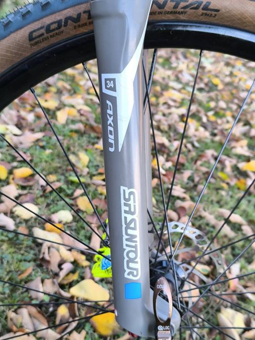 Rama je karbon s SR Suntour Axon 34 -110 mm, karbon kruna i karbon steerer/Edge 165x45 mm TR