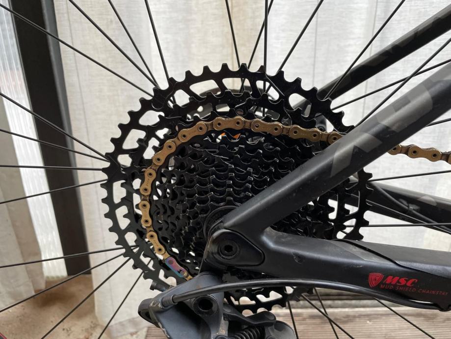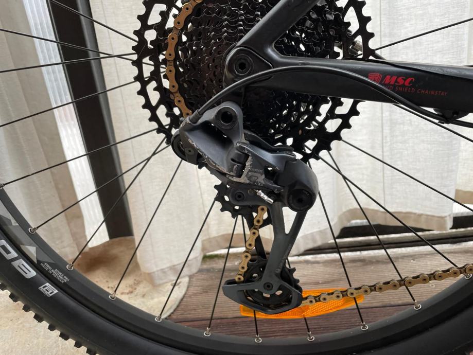 Bergamont: rama-karbonska, kotaci-shining, mjenjac-gx eagle, vilica- judi silver, lanac-sram eagle zlatni, prednja kocnica - shimano deore, straznja kocnica sram ult