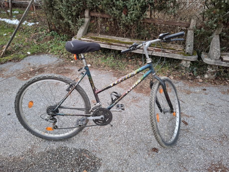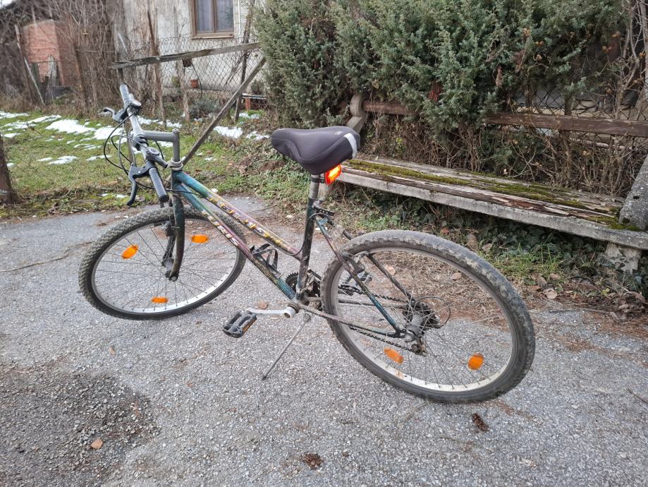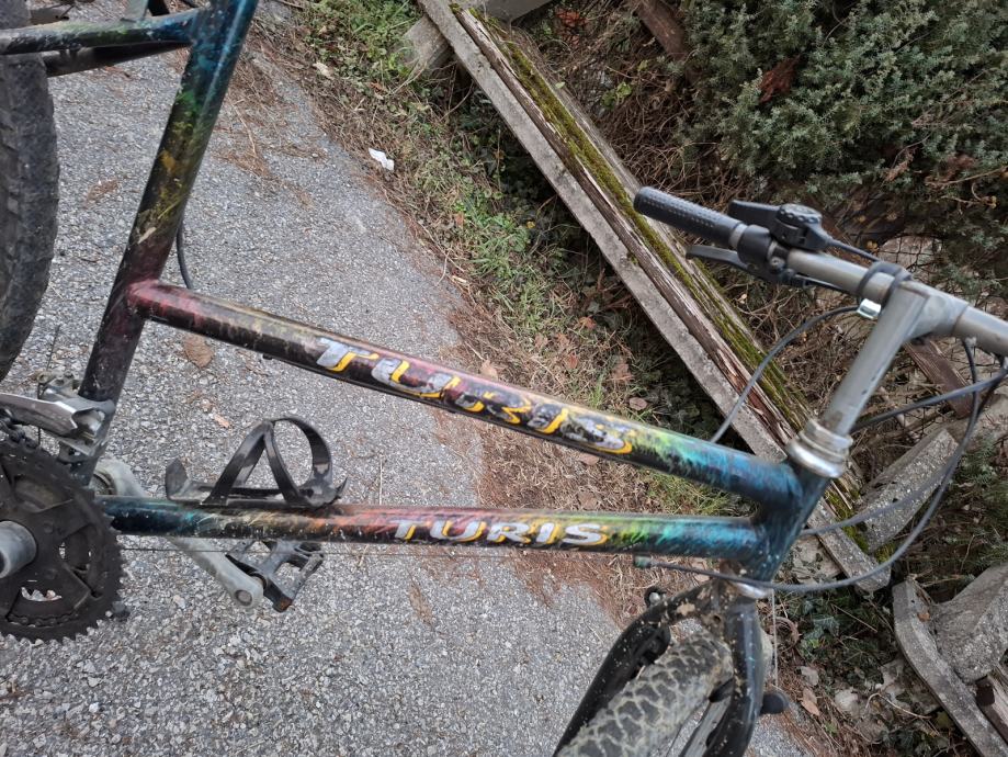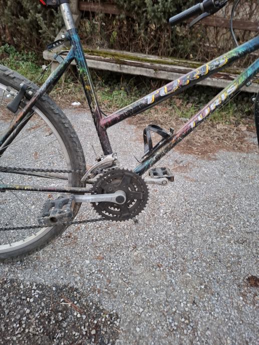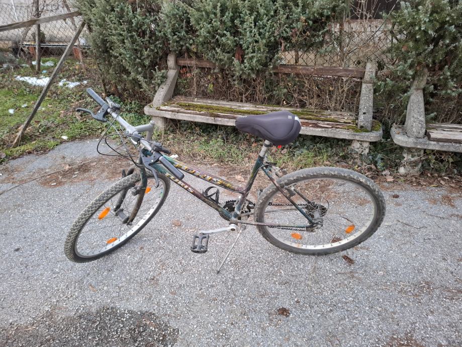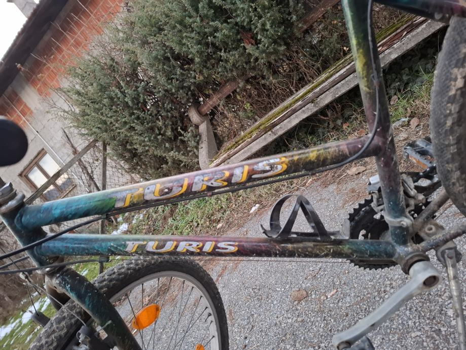 Prodaje se bicikl 26 cola marke TURIS. Ima 18 brzina shimano oprema, prednja i zadnja kočnica. Sjedalo se može podesivati prema gore i dolje. Uz bicikl dolaze mačije oči na felgama i nogica gratis.