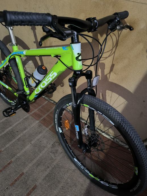 Bicikl 27.5 cola Njemačke marke Cross, kompletno servisiran, odlično stanje, gume kao nove, aluminijski okvir, dupli zid felge, Shimano mjenjači 24 brzina, bicikl ima i vrhunsku nogaru, izuzetno kvalitetan.