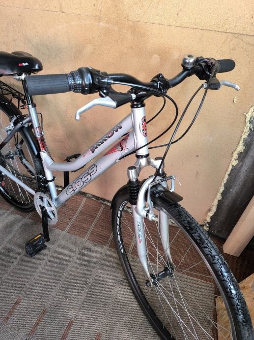 Bicikl 28 cola Njemačke marke Cross, kompletno servisiran, odlično stanje, gume nove, aluminijski okvir, dupli zid felge, Shimano mjenjači 21 brzina, bicikl ima i nogaru, izuzetno kvalitetan.