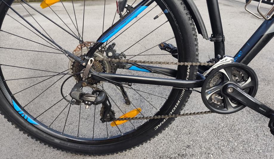 Bicikl AXSEES SANDE, je odličan, odlično stanje. Opremljen SHIMANO glavom na prednjem kotaču, prednji i zadnji blatobran sa brzim skidanjem za jednu minutu se skinu oba blatobrana, a dvije minute da se postave nazad. Disco kocnice. Nogara.