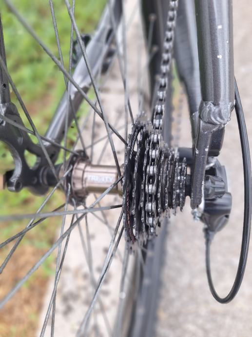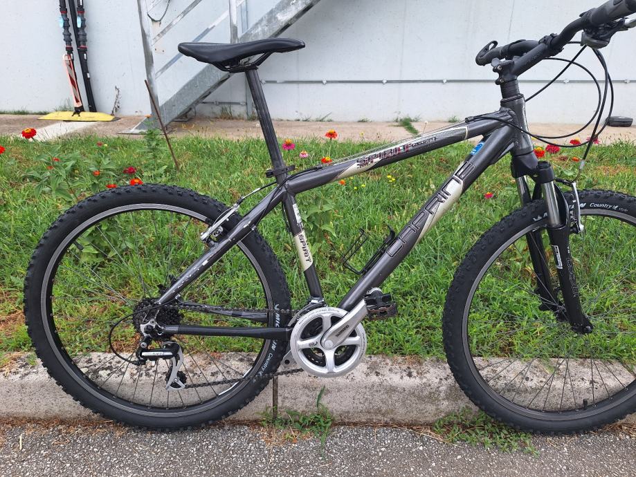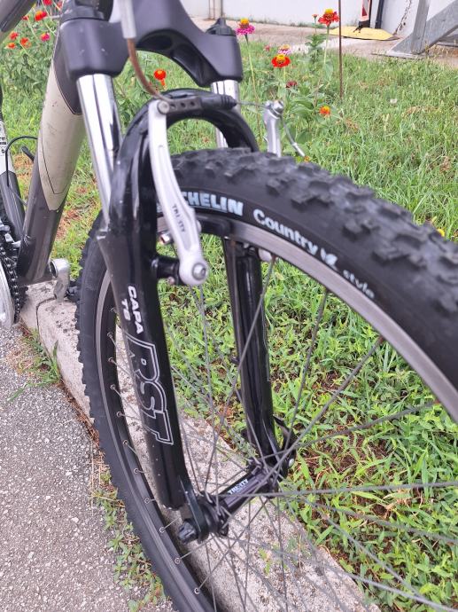Prodajem održavan i usčuvan Caprine Spirit bajk. Na bajku su nove gume i gripovi. Bicikl odlican, frisko servisiran. Velicina rame je za covjeka 160-175 cm visine. Vilica RST. Mjenjać komplet Shimano Alivio (prednji, zadnji i rucice mjenjaca) 24 brzine. Nove Michelin Country gume 26'. Lagana Al. rama. Trinity kotaci i v-brake kocnice.