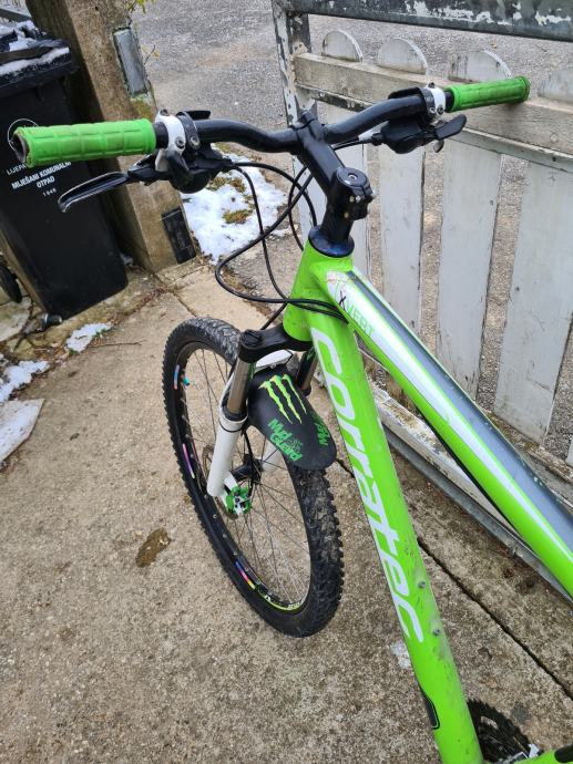 Prodajem bicik corratec x vert.Na biciklu je sve u super stanju,novi ležajevi kotača,novi ležajevi u volanu,novi ležajevi u osovini pedala,nove pakne na kočnicama,novi lanac.Prednja vilica je jako mekana i odlično radi.Ima 120mm hoda.Na biciklu je 3x9 shimano deore prijenos i brzine se šaltaju s lakoćom.S biciklom je sve u super stanju jedino je problem prva kočnica koju bi trebalo ozračiti jer koči i dok se ne pritisne ručica.Oko cijene bi se još mogli dogovoriti.