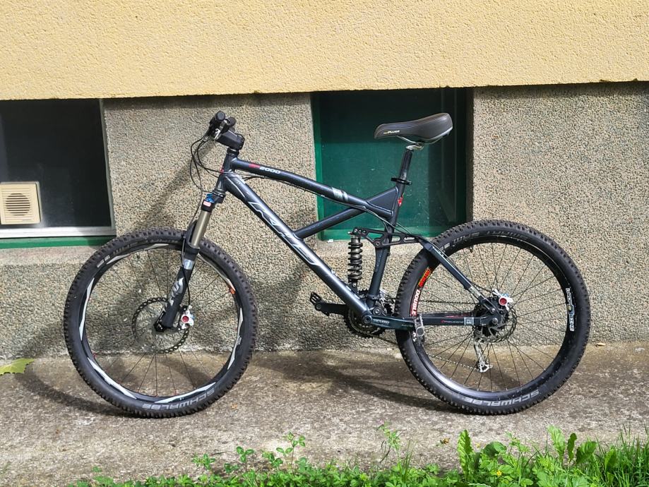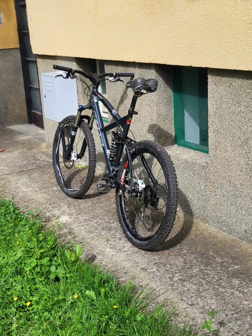 Prodajem enduro bicikl KHS Fr2000. Razlog prodaje je taj što se više ne vozim biciklom. Preko cijele zime i proljeća je bio nekorišten u podrumu. Sada 14.6. je došao sa servisa, novi lanac, nova kazeta i općeniti servis su bili odrađeni. Meni je bio odličan za vožnju po šumi i skokove. Veličina rame je L, gume su 27,5" i prednja vilica hoda 100/140mm. Također uz bicikl ide i kaciga, također L veličine, kao što se vidi na slikama. Cijena nije fiksna. Ne radim zamjene.