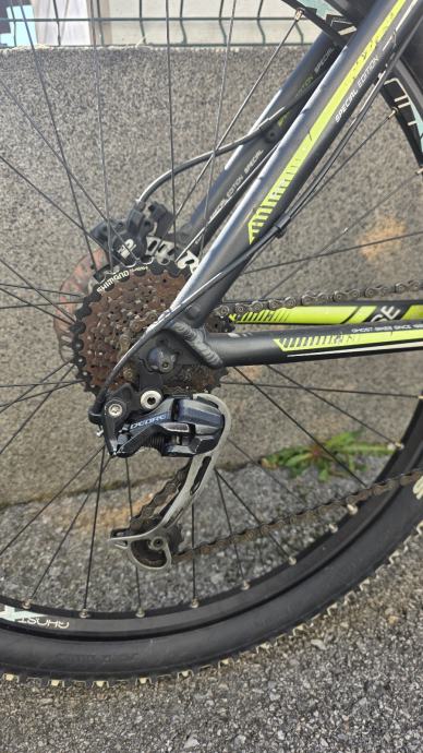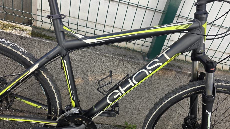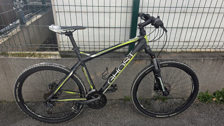 Prodajem MTB bicikl Ghost SE 2000, hardtail geometrije, u crnoj boji s žuto-zelenim detaljima. Rama je veličine L (48-52 cm), muške geometrije, a kotači su 26 inča. Bicikl dolazi s disk kočnicama i Shimano mjenjačem straga. Rama je aluminijska, lagana i čvrsta, pogodna za vožnju po raznolikim terenima. Bicikl je u dobrom stanju, napravljen servis prošle godine prije sezone i nije od tada vožen.