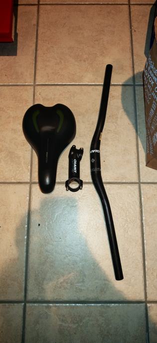 2x nova sjedala (usko i široko), gume vanjske i unutarnje, široki volan, podesiva lula, pedale. Sve navedeno staro cca 5mj. Sve original dijelove dajem uz bicikl (osim guma jer su potrošene) ispravne ali meni osobno ne leže pa je zamijenjeno. Set za zamjenu ulja u kočnicama s uljem takodjer dajem jer sljedeći uzimam sa standardnim kočnicama.