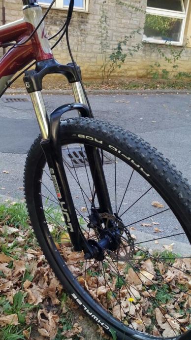 Kotači 29" s duplim aluminijskim obrucima, Shimano Acera oprema, SR Suntour XCT vilica, Schwalbe Rapid Rob gume, sjedalo WTB Volt. Novi koštao 5999kn.