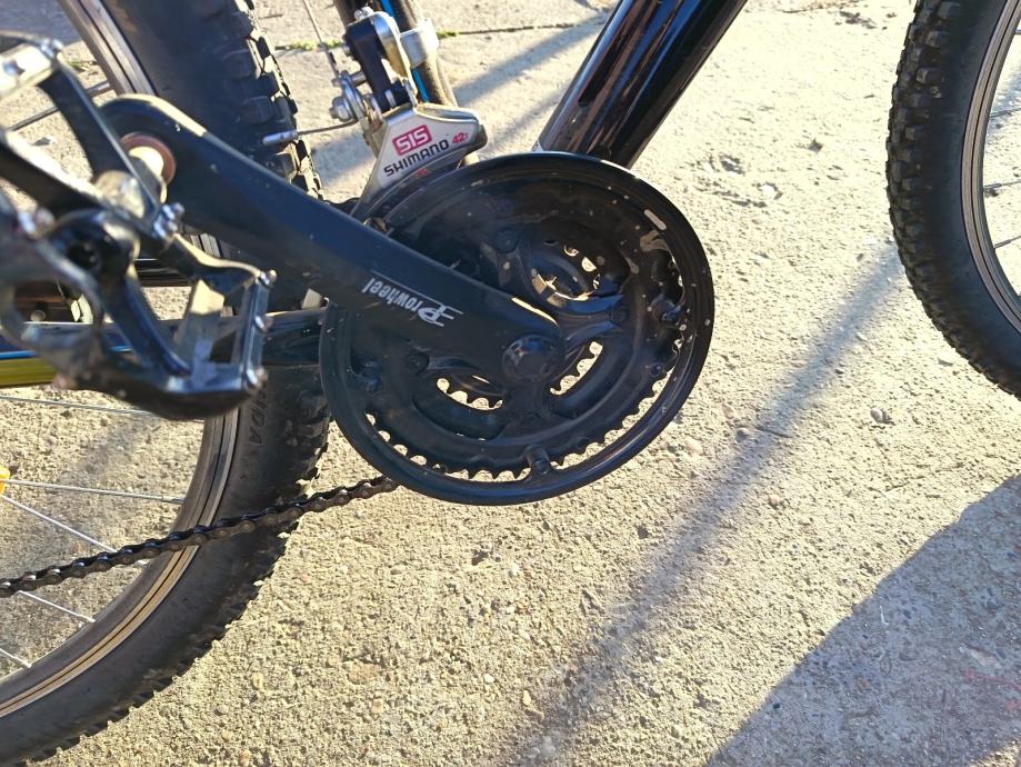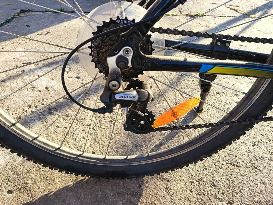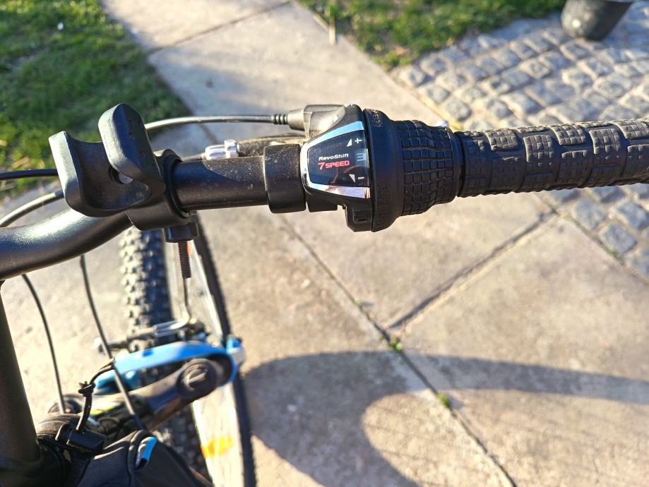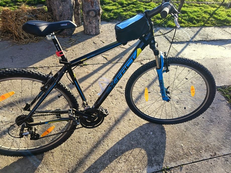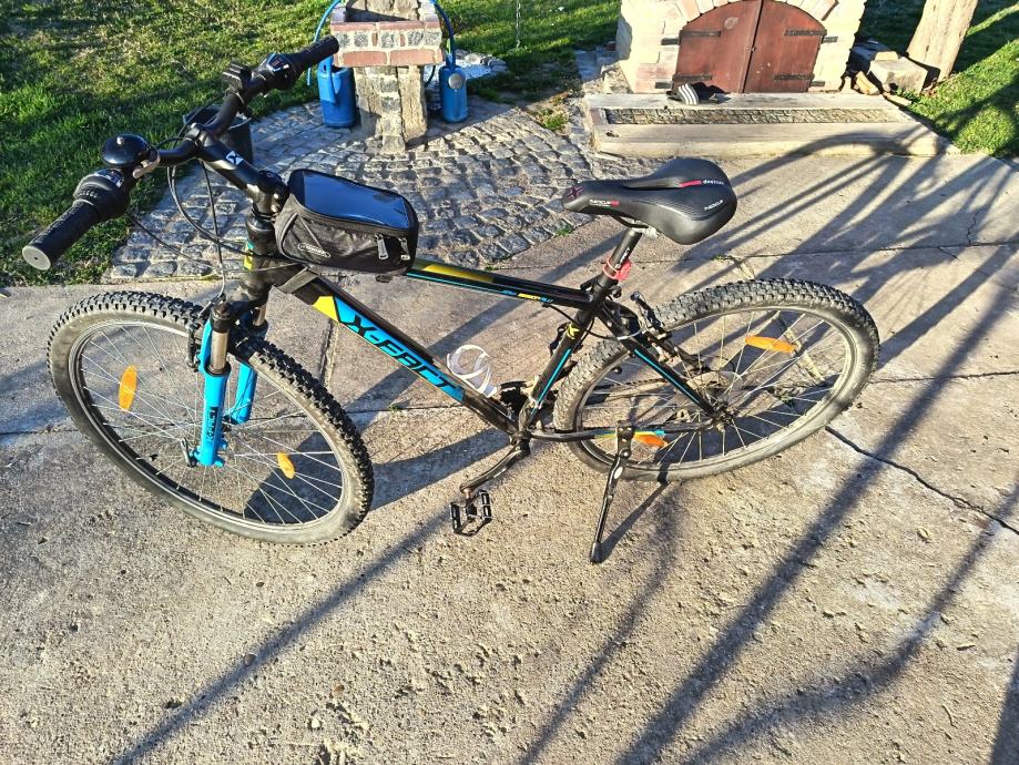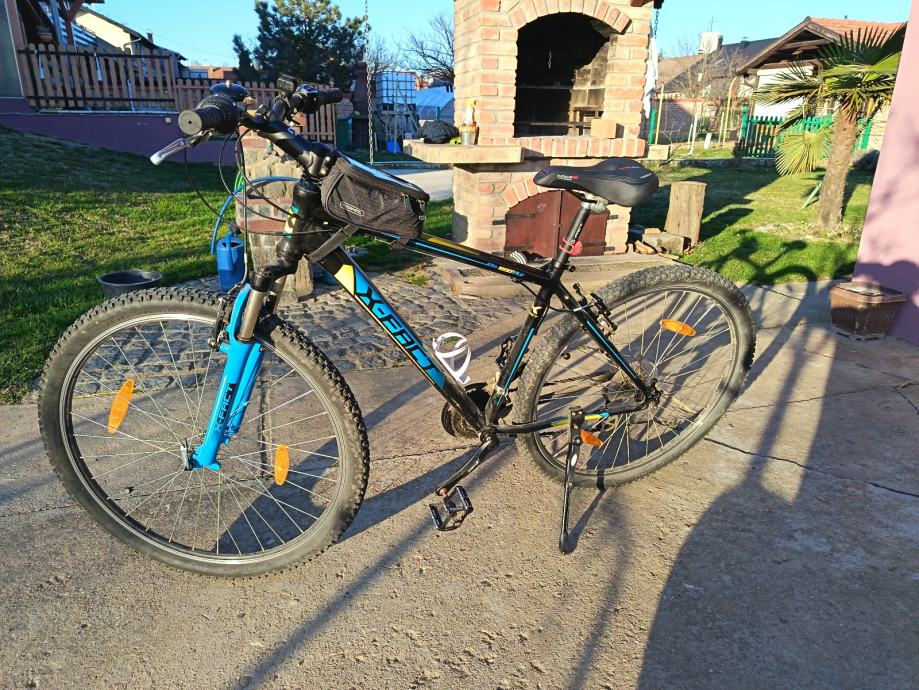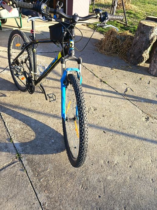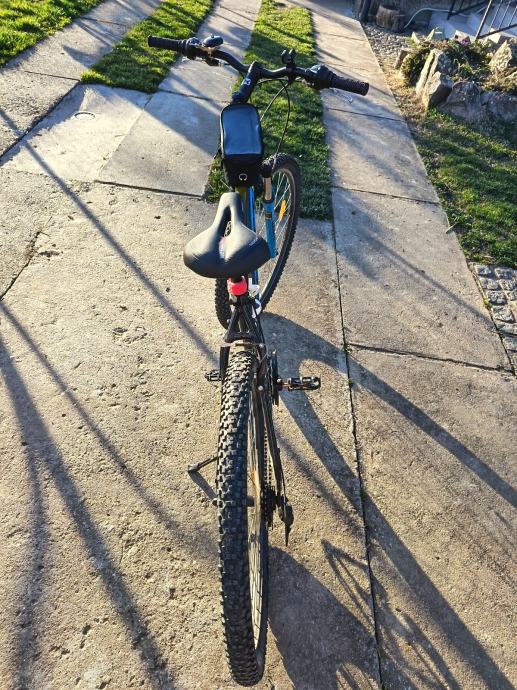 Prodajem MTB bicikl s kotačima od 29 inča, veličine rame L (48-52 cm), muške geometrije. Radi se o crno-plavoj kombinaciji boja s prednjom amortizacijskom vilicom. Gume su terenskog profila, prikladne za vožnju po različitim podlogama.