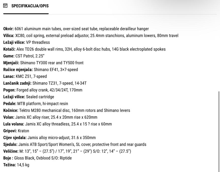 17’’ Velicina dodatno kupljen Nogar i drzac za bocu.