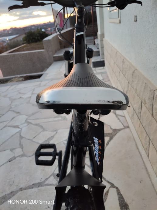 Prodajem MTB bicikl s hardtail ramom i kotačima od 29 inča. Radi se o muškoj geometriji s ramom veličine M (44-47cm), što odgovara prosječnoj visini vozača. Bicikl je opremljen disk kočnicama za pouzdano kočenje u svim uvjetima. Hardtail izvedba znači da ima prednju amortizacijsku vilicu, dok je stražnji dio rame krut, što ga čini prikladnim za razne terene od šumskih staza do gradske vožnje.Na slici je vidljivo ostecenje sica.Ima nove maxxis gume,pedale i blatobrane.