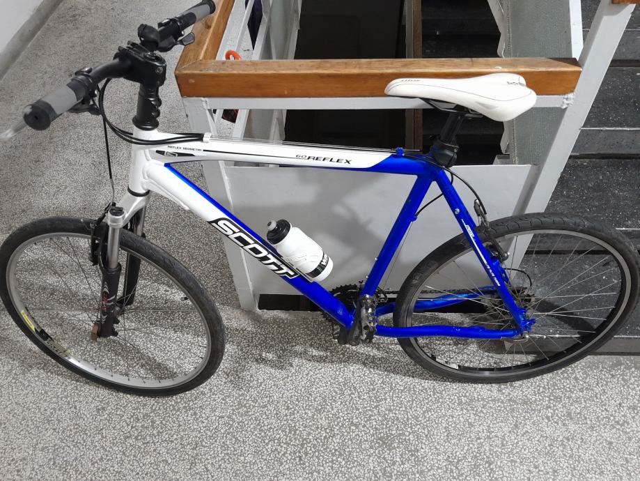 Prodajem rabljeni bicikl Scott,aluminijski okvir,XL veličine,ugrađen adapter za povišenje upravljača,za osobe do 190cm visine,v-brake kočinice,shimano deore mjenjači,27 brzina,nosač boce,dupla stijenka kotača. Dogovor može poziv,SMS,what's up.