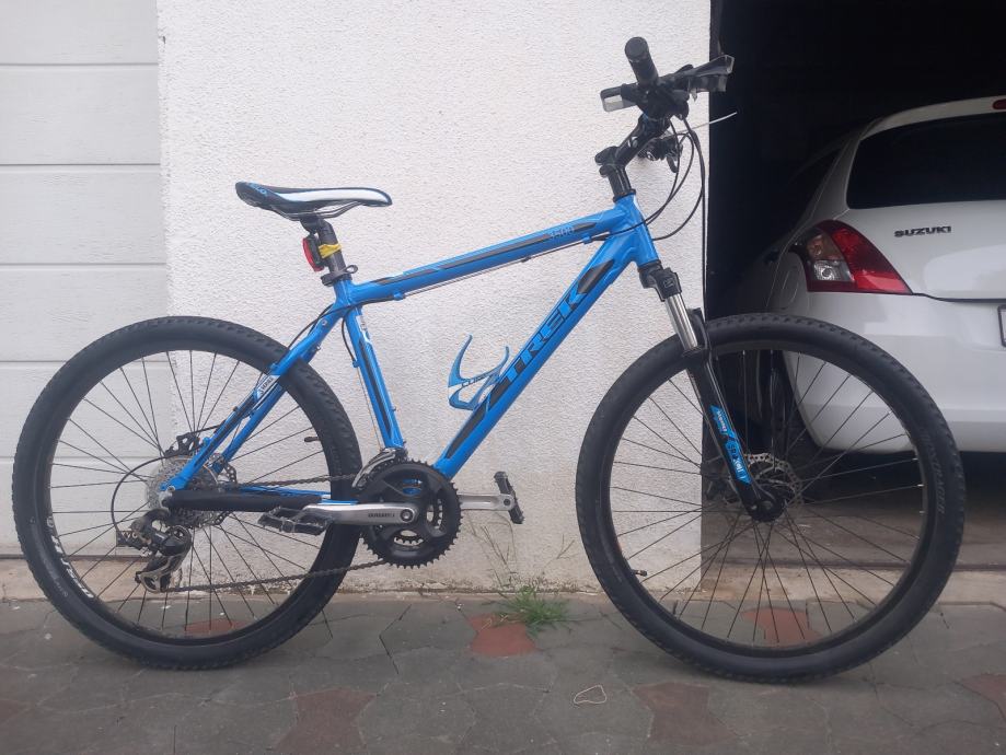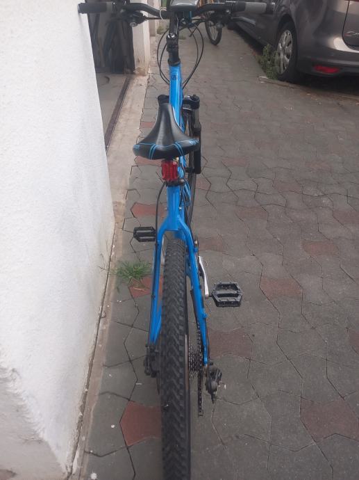 Prodajem MTB bicikl Trek 3500 u plavoj boji. Radi se o hardtail modelu s muškom geometrijom okvira, veličine M (44-47 cm) i kotačima promjera 26 inča. Okvir je lagan i čvrst, a bicikl je opremljen prednjom amortizacijskom vilicom te disk kočnicama. Mjenjač omogućuje širok raspon brzina, što ga čini prikladnim za vožnju po različitim terenima.