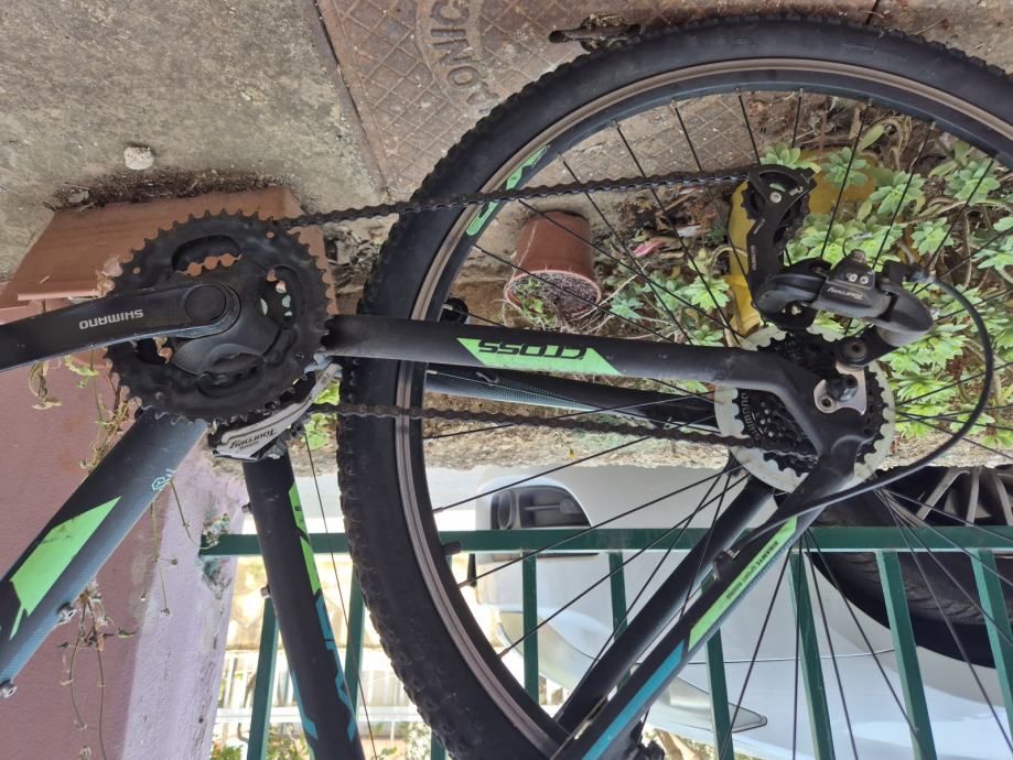 Bicikl Cross, klasičan jedan MTB bajk u nižoj cjenovnoj razini s V-break sistemom i običnom Suntour vilicom.
