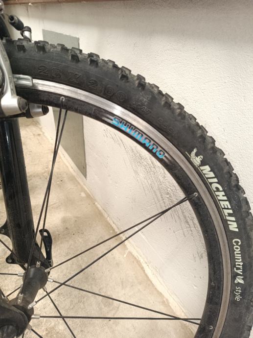 Kvalitetan bicikli sa pojačanim felgama.26 coli točkovi.Pogodan za dječake i muškarce visine od 155 do 170 cm. 27 brzina.