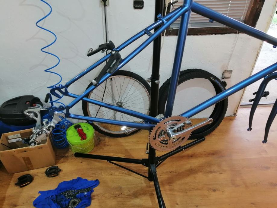 Prošle godine promijenjeni svi dijelovi,obojen u metalik boju.Nove,gume navigator,ručke,kočnice,sajle.Od servisa stoji zato se i prodaje.Dijelovi nisu kineski.Biciklin je star 27g.