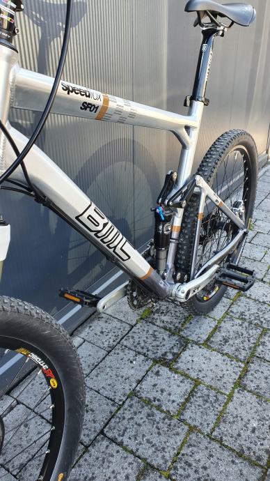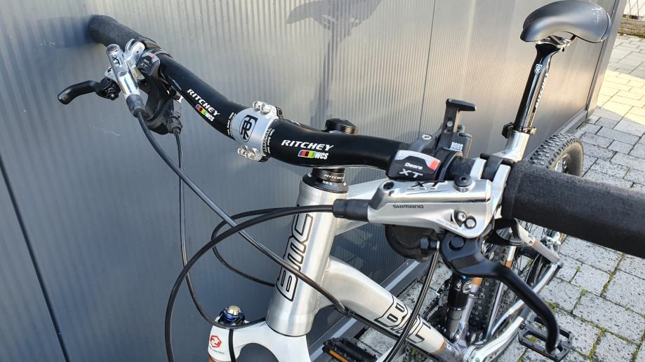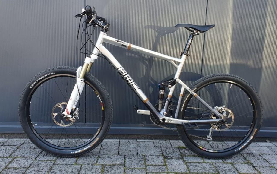 BMC bicikl sa Duplom suspenzijOM iznimno kvalitetan, Švicarske proizvodnje u perfektnom stanju. Veličina okvira između"L" i "XL" veličine, kotači 26", potpuno ispravan, bez oštecenja.