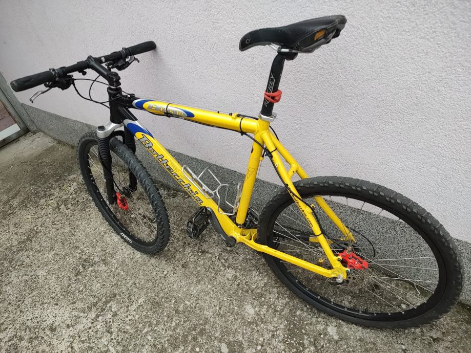 Bottechia FX 5.7 Full LX bicikl, sa Grimecca hidraulickim kocnicama sa 4 klipa, Rock Shox Judy-c suspenzijom, malo stariji kupljan u Marko projektu dok je jos bio na Volovcici, ali dobro funkcionira, treba mali servis-podesavanje brzina, BB , ima semi slick gume u dobrom stanju, velicine 26 cola.