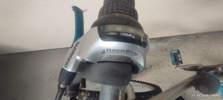 Prodajem brdski bicikl s krutom (rigid) ramom muške geometrije i kotačima promjera 26 inča. Rama je srebrne boje, a bicikl dolazi opremljen Shimano RevoShift mjenjačem brzina. Na upravljaču se nalaze ručice za mijenjanje brzina, a bicikl ima i nosač za bočicu s vodom.