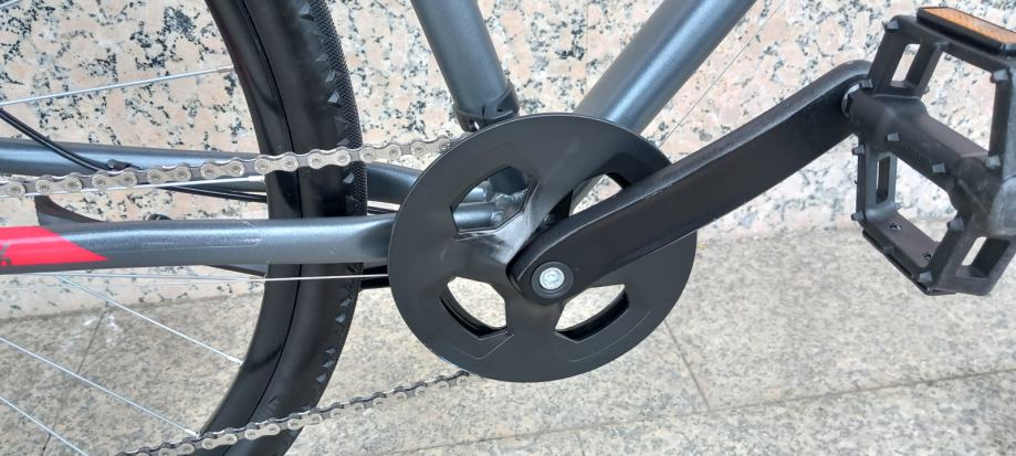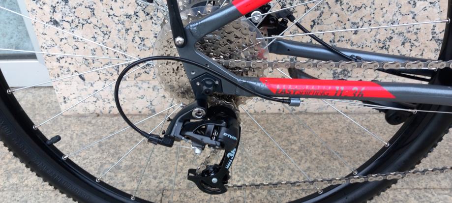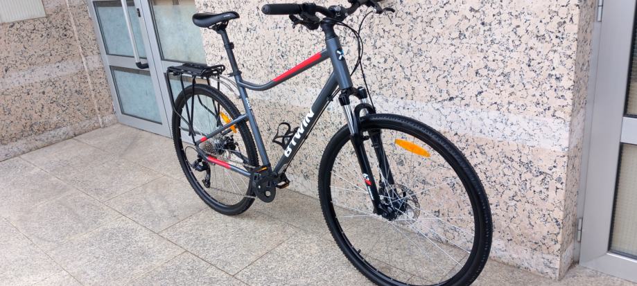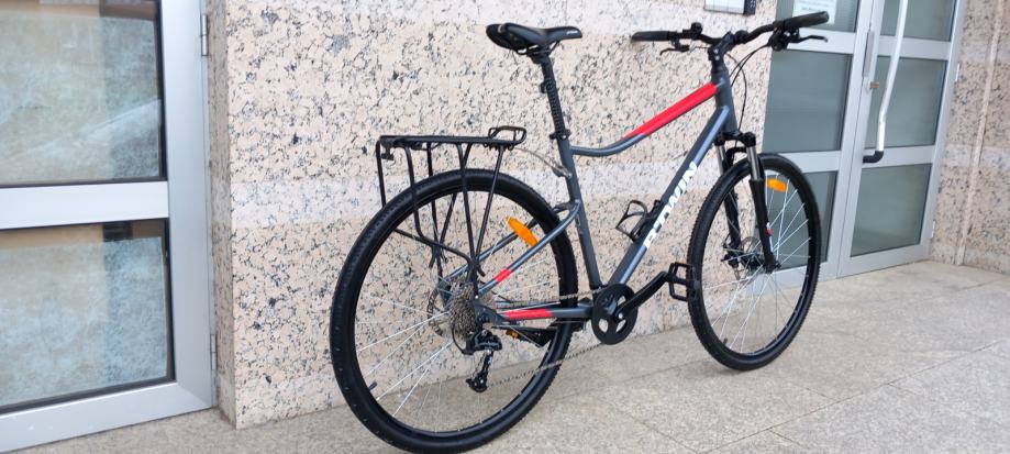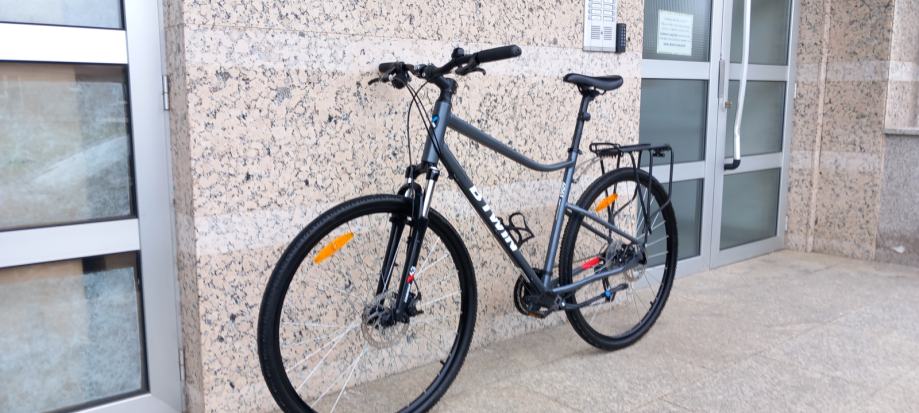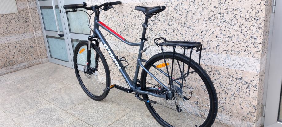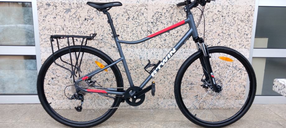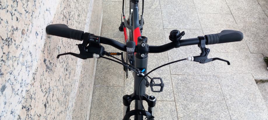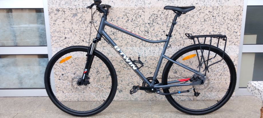 Alu rama za osobe do 185cm, prednja suspenzija,shimano btwin oprema, 9 brzina ,nogica, servisiran, 28cola dupla stjenka felge, mehaničke disk kočnice, nosač bidona, nosač bisaga