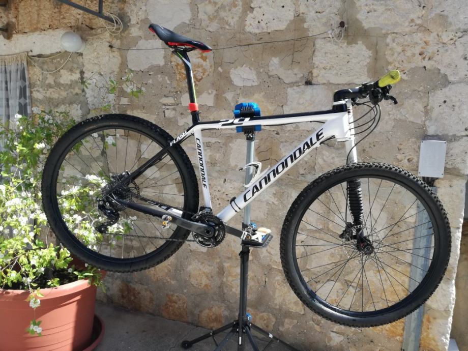 Prodajem Cannondale Flash 29'' Carbon + alu Lefty PBR 90mm (mogucnost podizanja na 110) vel. XL (za vozaca od 185-195cm). Pogon Sram x7, 2x10 + xt deore, shifteri Shimano SLX. Kočnice Shimano BL-M785-B (nove plocice). Sa biciklom dolaze Spd pedale Xpeado titanium (150€). Osim manjeg servisa na vilici (100€), sve ostalo je 100% ispravno i spremno za voznju. Gume na 90%.