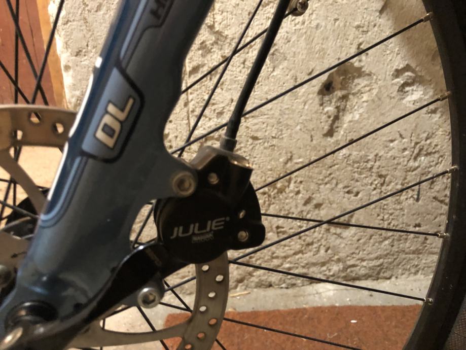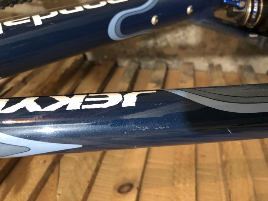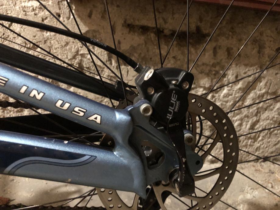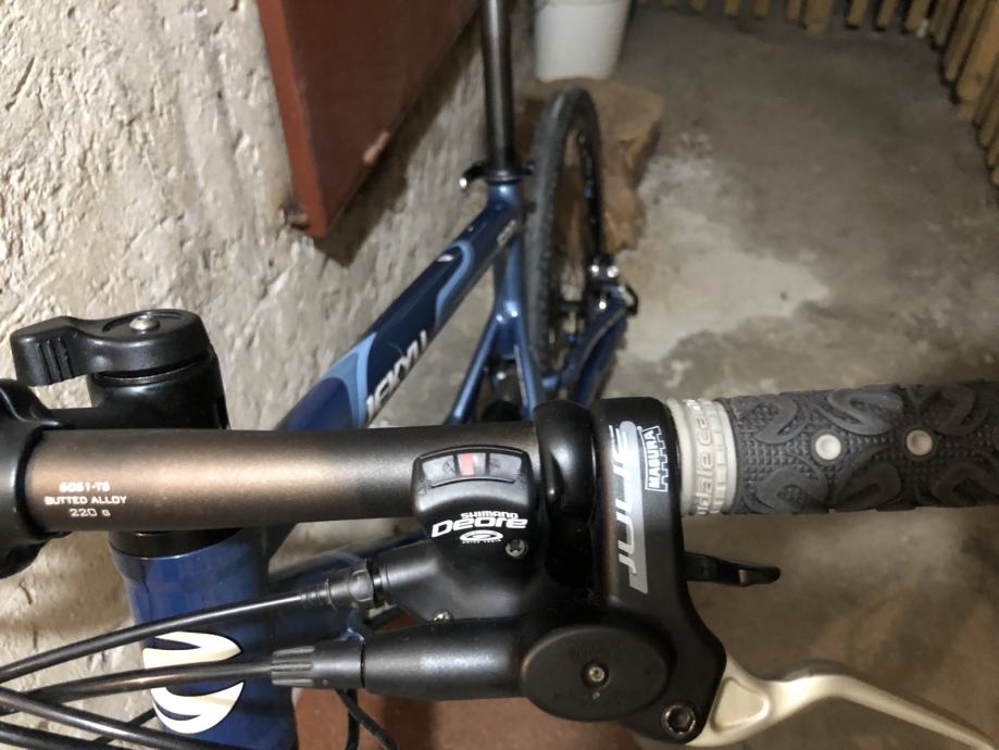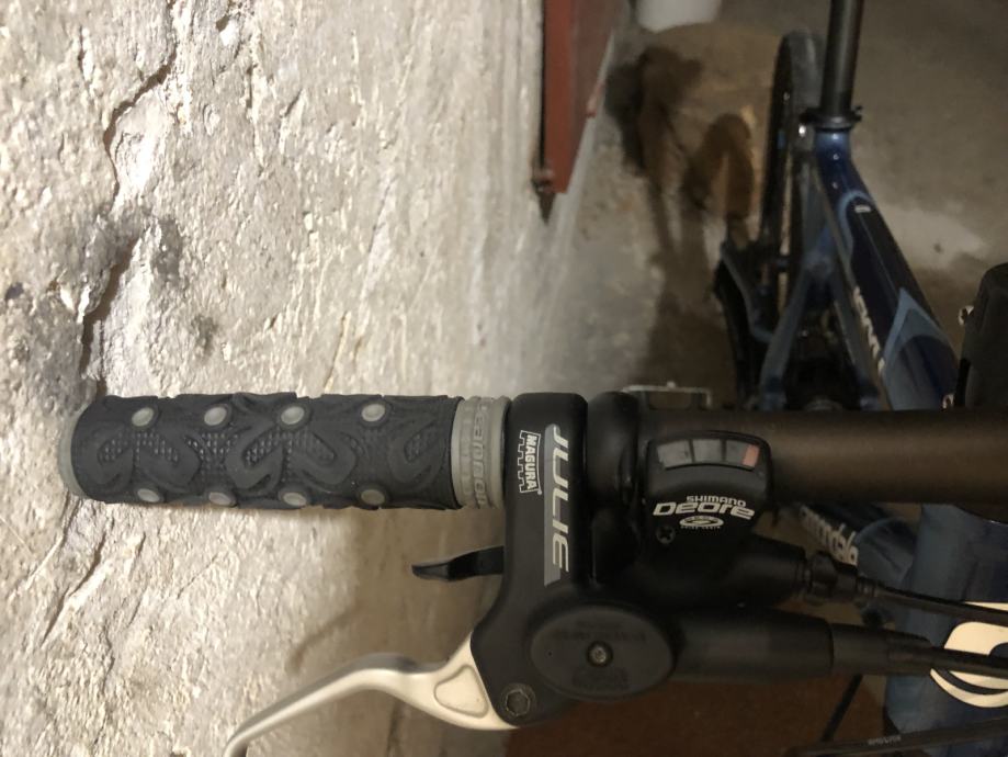 Oprema deore/lx/xt, kocnice magura julie, obruci mavic sa deore nabama, straznji fox shock, podesiva geometrija rame. Potreban servis zadnjeg mjenjaca i nisam siguran radi li lockout vilice kako treba. Gume cestovne. Osim nekoliko manjih ogrebotina na rami i jedne vece ogrebotini na vilici jako je ocuvan.