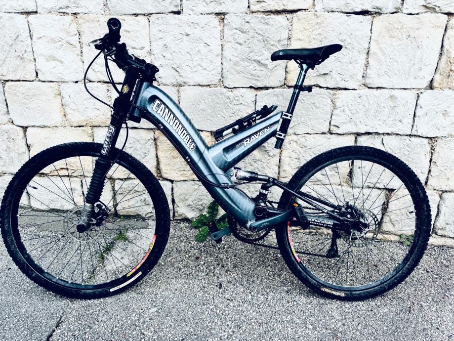 Vrlo rijedak Cannondale bicikl s punim ovjesom, model Raven. Ručno izrađen u SAD-u 2003. godine. Okvir je od jedinstvene magnezijske legure, a tijelo od karbonskih vlakana. Pogonski sklop je vrhunski Shimano XTR, hidraulične kočnice Hayes, a kotači Bontrager. Cijena novog bicikla bila je 5000 €. Tražena cijena sada je 990 €.