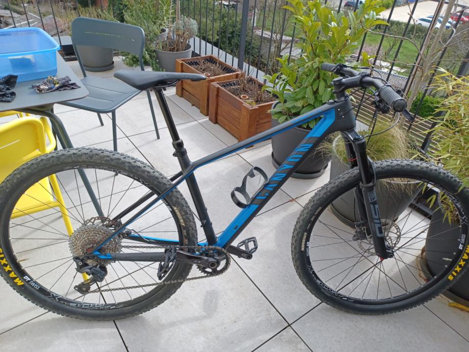 Dosta stock dijelova je promijenjeno (vilica, dropper, cijeli groupset), cijela specifikacija navedena niže. Uz bicikl ide i skoro novi set foldable Schwalbe Hans Dampf 29x2,35 guma koje sam koristio kao zimski set, nekoliko rezervnih dropouta i nekoliko rezervnih IPU (neka Canyon zaštita od udarca guvernalom u ramu), rezervne zračnice i druge sitnarije (stari 2x pogon, prednji mjenjač+shifter)