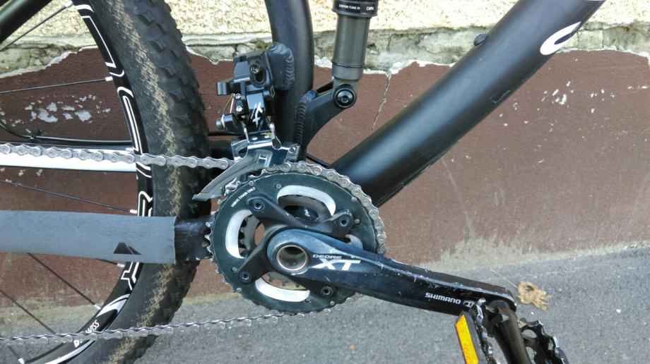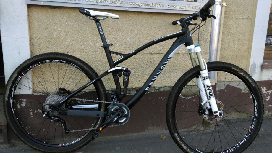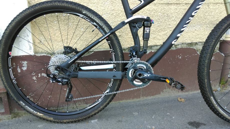 MTB bicikl Canyon Nerve 29 u L veličini rame sa prednjom vilicom FOX i zadnjim amortizerom FOX te kompletnom Shimano XT grupom od pogona, mjenjača, shiftera do kočnica. Kotači DT Swiss.