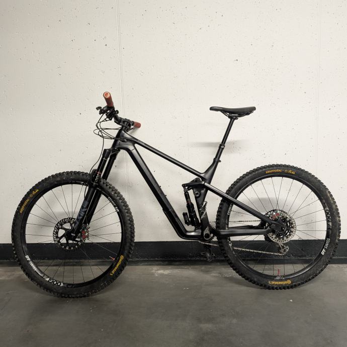 Redovito servisirani. Veliki servis vilice i suspenzije odrađeni početkom 2024. Kazeta (NX) i lanac (X01) posljednji put mijenjani u studenome 2024. Continental Kryptotal gume stavljene u svibnju 2024 (tubeless). U veljači 2025. mijenjani lageri na kotačima/hubovima.