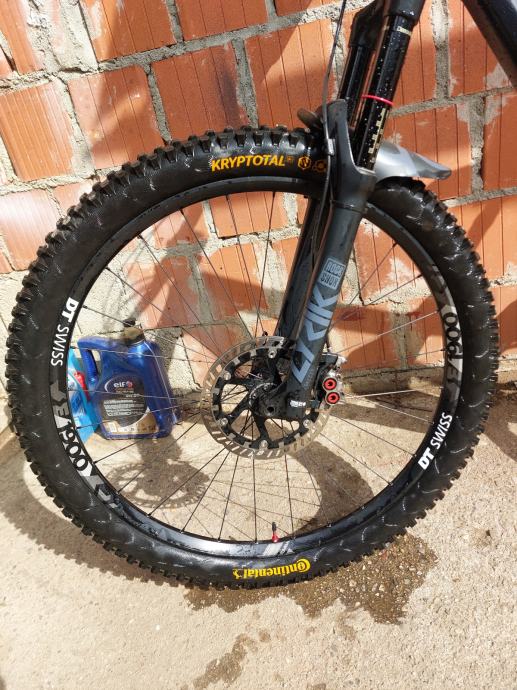 Bicikl dolazi opremljen DT Swiss naplatcima, Continental Kryptotal gumama koje su prakticki nove i RockShox vilom.