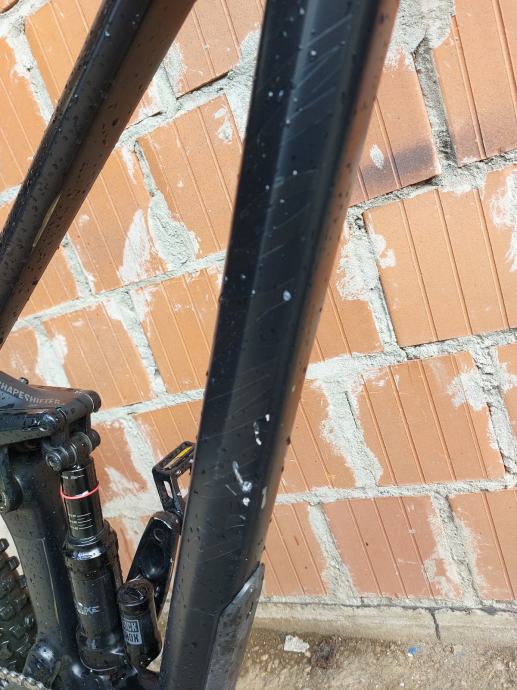 Bicikl nema nikakvih ostecenja osim vizualnih. Na rami je pohabana boja pored masinice,od patika i hlaca,i sa desne strane na donjoj cijevi ima par flekica od kamenja koja bi bacio prednji kotac. Vecinom nije ni ostecen lak vec orginalna zastitna folija kojom je preljepljena cijela rama odmah nakon kupnje. S bicikla nikad nije padano.
