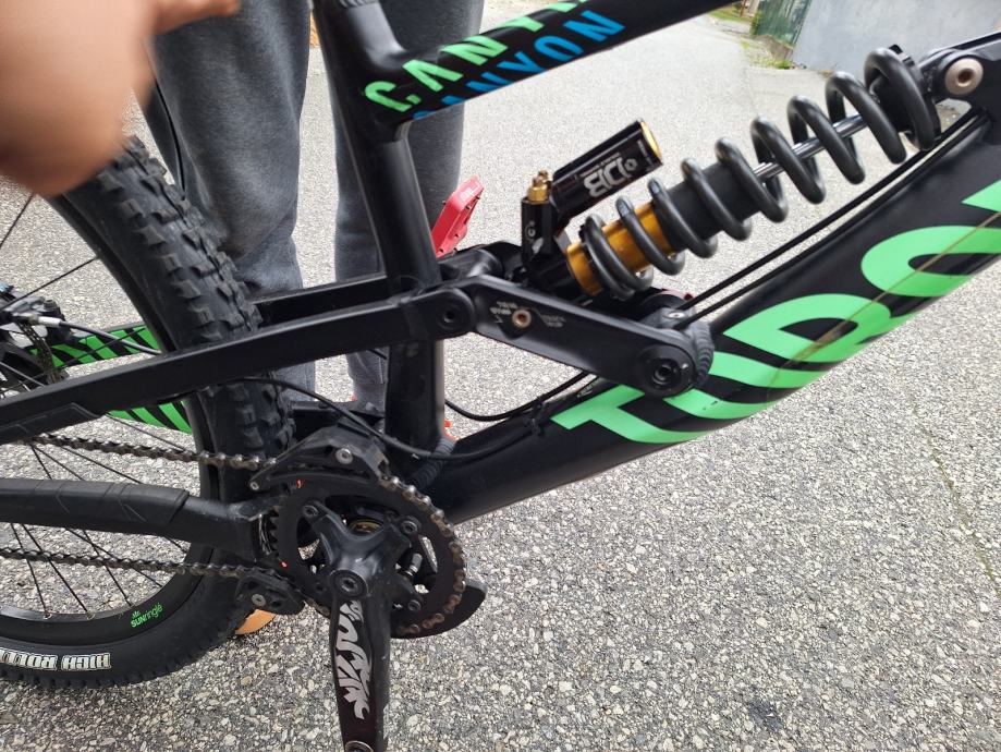 Prodajem rabljeni Canyon TORQUE DHX mountain bike s punom suspenzijom i kotačima od 26 inča. Bicikl je muške geometrije, veličine rame M (44-47cm), idealan za zahtjevne terene i downhill vožnju. Crno-zeleni dizajn s kvalitetnim komponentama čini ga savršenim izborom za iskusne bicikliste koji traže pouzdani full suspension MTB.