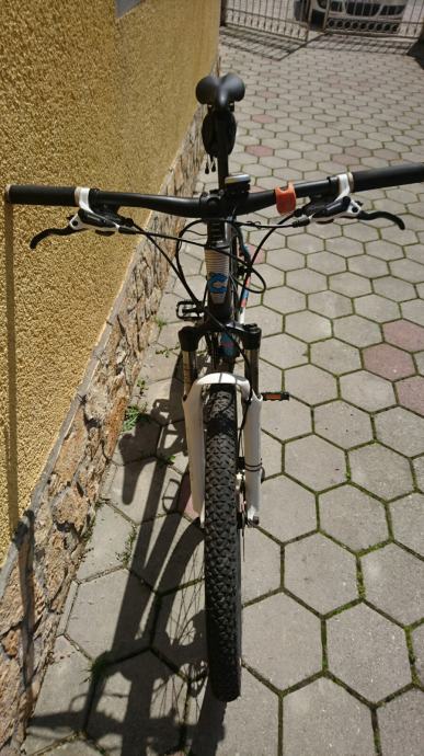 Specifikacije: Rama ALLOY HARDTAIL Vilica SUNTOUR SF15-XCM-HLO-DS-27,5' ' T: 100 Headparts FSA H2246A Pogon SHIMANO ACERA AFCM391E422XL Pedale VP-990A * BLACK Lanac KMC X9 Stražnji mjenjač SHIMANO ALIVIO ARDM4000SGS Prednji mjenjač SHIMANO ALTUS AFDM370M6 Ručice mjenjača SHIMANO ALTUS SL-M370 * 27 SPEED Kazeta SHIMANO ACERA CS-HG200-9 Obruči / Kotači CRX6 FOR DB Prednja naba SHIMANO AHBRM33B 32H CL QR * BLACK Stražnja naba SHIMANO AFHRM33BZB 32H CL QR * BLACK Žbice 32 BLACK 14G Gume CONTI RACE KING 27,5x2.20 Volan HL MTB-AL-152FOV * BLACK Lula volana HL TDS-D364-8FOV * BLACK Gripovi VELO VLG-311AD2 130 MM * BLACK/ORANGE Sjedalo SELLE ROYAL SR-8014UR0 SHADOW * WHITE/BLUE Cijev sjedala HL SP-19 * BLACK Prednja kočnica SHIMANO AM355MFPRX090 * WHITE * PM Stražnja kočnica SHIMANO AM355SRURX165 * WHITE Veličina rame 460, 510, 560 Info: Proizvođač Cross, Veličina kotača 27.5", , Rama Hardtail, Veličina rame 510 mm,