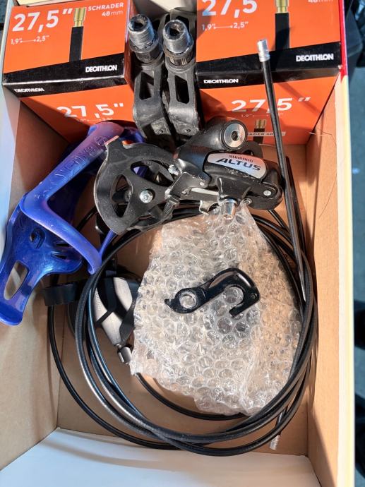 (prodaja bez blatobrana) Uz bicikl dajem montiranu lampu na 18650, patkicu, cube nogar, dvije zračnice, prethodnu kazetu, Shimano lijevu ručicu mjenjača, prednji mjenjač, nosač stražnjeg mjenjača, prethodni mjenjač Shimano Altus i originalne pedale.