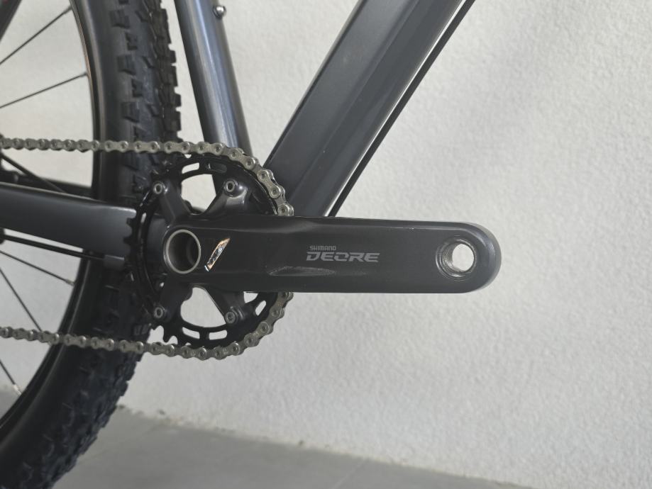 Prodaje se naveden bajk u odlicnoj opremi. Bicikl jedva da je prosao 100km. Na njemu su nove maxxis ardent gume,zracna Rock Shox Judy vilica,1x12 pogon sa deore kazetom,deore mjenjacem,i slx shifterom,shimano mt200 hidroulicne kocnice sa 180mm diskovima. Bicikl je super ocuvan, od znakova koristenja ima samo tockicu na gornjem dijelu rame od premjestanja po supi.
