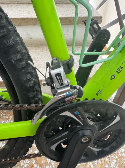 Veličina rame: 14”, Kotači: 27.5”, Boja: Green ‘N’ Iridium, 24 brzine, shimano mijenjač, hardtrail, Disk prednje i stražnje kočnice, Cijena nove: 455 €