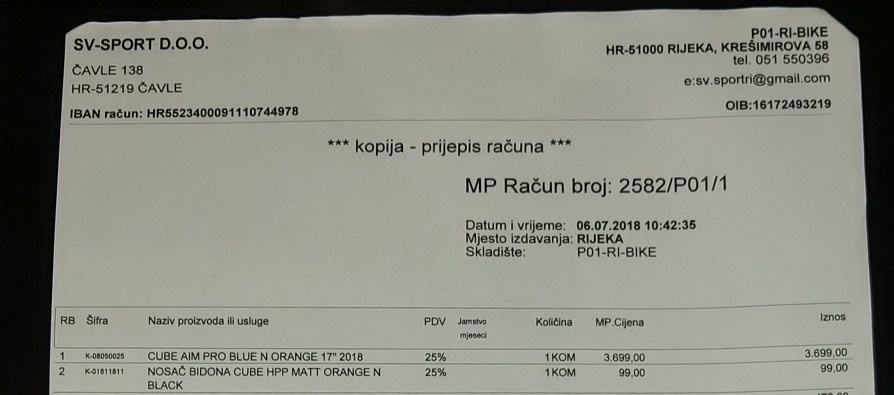 Prodajem CUBE AIM PRO BLUE N ORANGE. Veličina je 17(M). Bicikla je stara godinu i pol i još je pod garancijom. Vozilo ju je djete od 13 godina, isključivo u rekreativne svrhe, bez dječjeg divljanja. Bike ima točno 568 km. U prilogu print screen sa Strave sa točnim vožnjama i km. Stanje je 10/10 a razlog prodaje je nabavka jačeg bicikla za XC. Novi je već kupljen, tako da igraju samo novci, zamjene me ne zanimaju. Sa biciklom dajem original Cube nosač bidona i nogar.