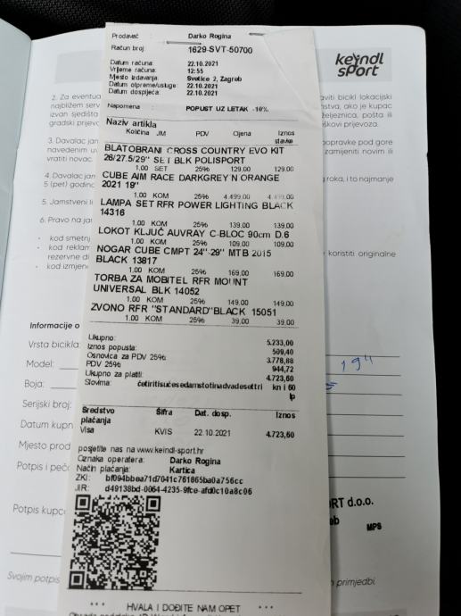 Prodajem Cube Aim Race 2021 u sivo-narančastoj boji, veličina rame L (19"), kotači od 29". Kupljen je 22.10.2021. u Keindl Sportu te je vožen doslovno jedanput. Uz njega poklanjam dodatno kupljene blatobrane (postavljaju se u par sekundi), nogar i lanac.