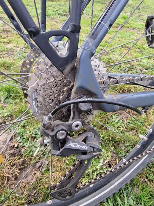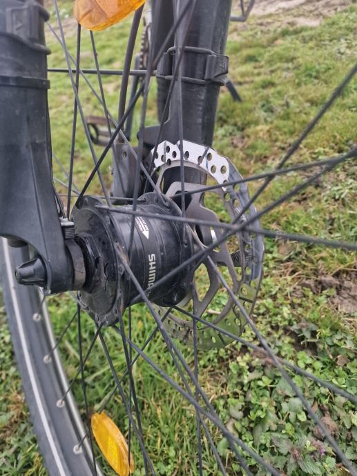 Prodajem MTB bicikl Cube Aim SL, hardtail geometrije s 29-inčnim kotačima. Radi se o muškom modelu s okvirom veličine XXL (58-61 cm), što odgovara višim vozačima. Okvir je tamno sive boje. Bicikl dolazi opremljen disk kočnicama sa Shimano glavčinama, a na upravljaču je montiran držač za mobitel. Vidljivi su i nosač za prtljagu te blatobrani.