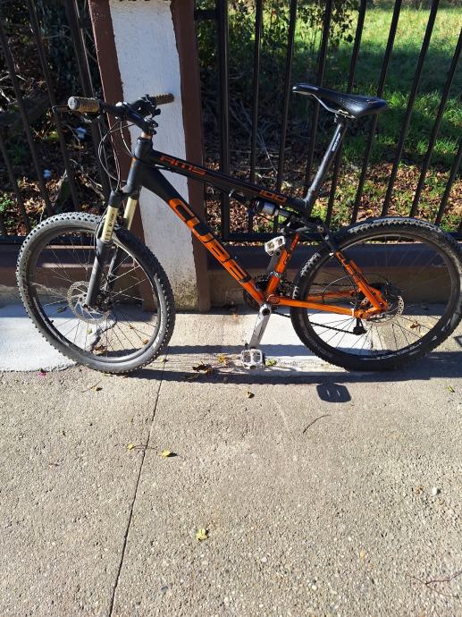 Prodajem Cube AMS 100 MTB bicikl s full suspension okvirom i 26-inčnim kotačima. Bicikl ima prednju i stražnju amortizaciju, disk kočnice te odličnu opremu za vožnju po zahtjevnim terenima. Okvir je u kombinaciji narandžaste i sive boje s prepoznatljivim Cube dizajnom. Bicikl je funkcionalan i spreman za vožnju.