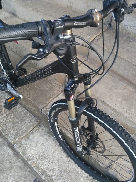 Prodajem fully Cube Ams 100 pro, vel.rame 22" (56cm), kompletna oprema na biciklu je Shimano XT, vilica RS Recon 100mm s lockom na volanu, shock Manitou Radium 100 mm, Formula Oro kočnice 180/160, Nobby Nic gume 26x2.25, Selle Italia sic..
