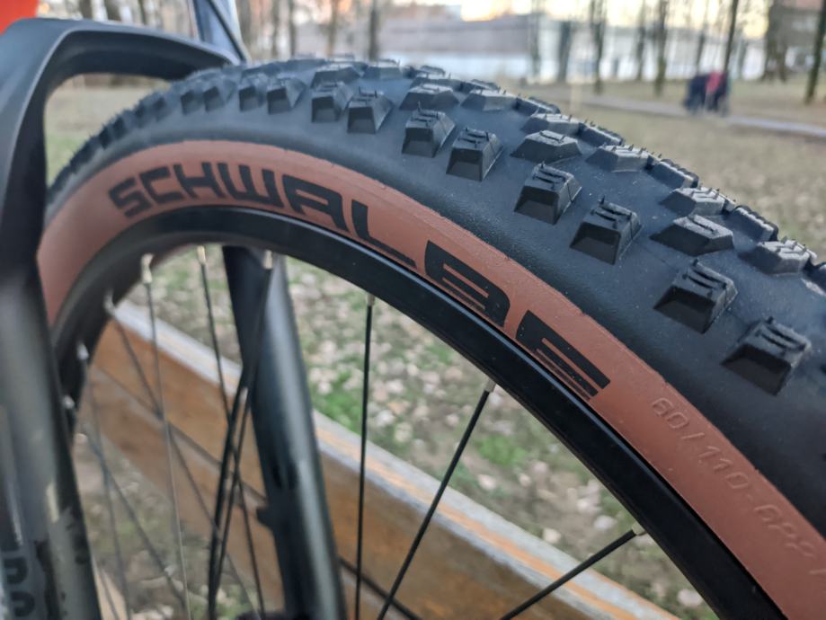 Kotači širine 25 mm prilagođeni većoj težini vozača sa Deore nabama i širokim Schwalbe gumama 29x2.35.