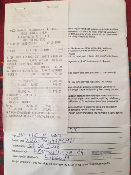 Prodaje se korišteni CUBE brdski bicikl. U jako je dobrom stanju osim ogrebotina vidljivih na slikama. Torbica vidljiva na slici dolazi uz bicikl.