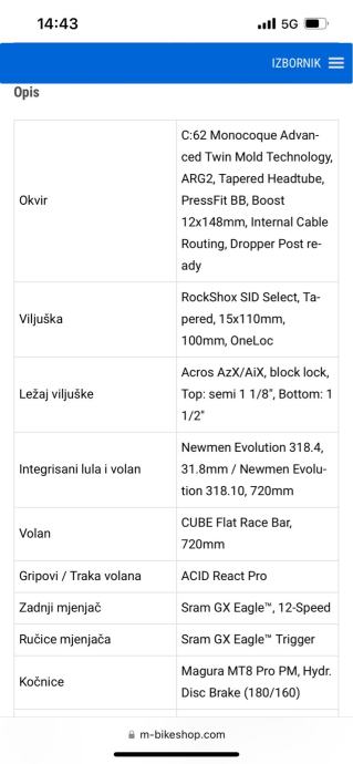 Cube Elite c62 one, star godinu dana, jako malo vožen, cca 1000 km, veliku većinu po cesti. Gume tubeless, praktički nove,cca 100 km.