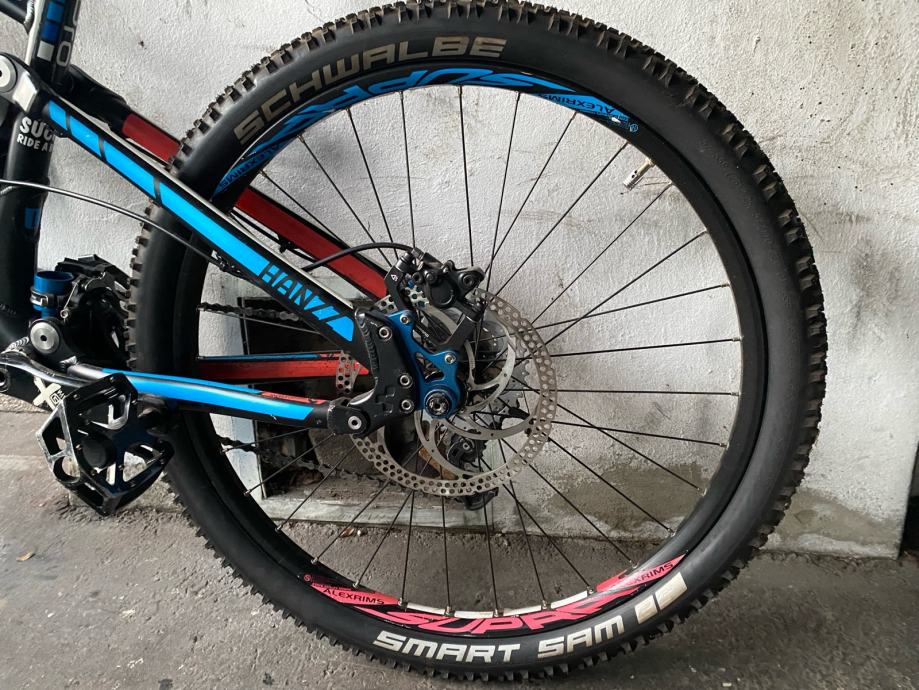 Prodajem Cube Hanzz Pro 2015 full suspension bicikl vozen rekreativno. Gore su nove kocnice, nova zadnja kazeta+prednje sajbe+lanac, nove vanjske i unutarnje gume, gripovi i nove sajle. Obruci Alexrims Supra, mjenjaci Deore, shock Fox Van RC, bazooka guvernal… u zadnjih godinu dana ulozeno preko 400€ a nije vozen ni 20ak km od tada. Bicikl ne trazi ulaganja, sjedi i vozi. Ostecenja su samo estetska, crtice i pokoja ogrebotina, nema krekova i dentova. Nije mi hitno prodat.