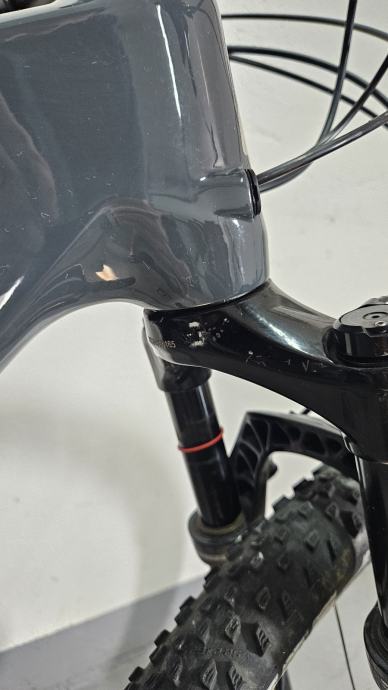 Ima samo sitne kozmetičke tragove od kamenčića i malu ogrebotinu na metalnom dijelu vilice od nosača za bicikle (vidljivo na slici).
