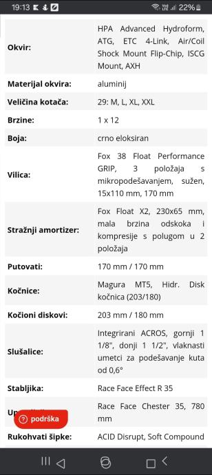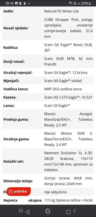 Prodajem navedeni MTB full suspension bicikl L veličine u odličnom stanju. Bicikl je kupljen u Kiendl sportu 09/2024 godine, te za isti posjedujem račun. Sa biciklom je prijeđeno cca 300 km, a razlog prodaje je zdravstveni. U 8.mjesecu je napravljen veliki redovni servis. U fotografijama se nalazi i specifikacija.