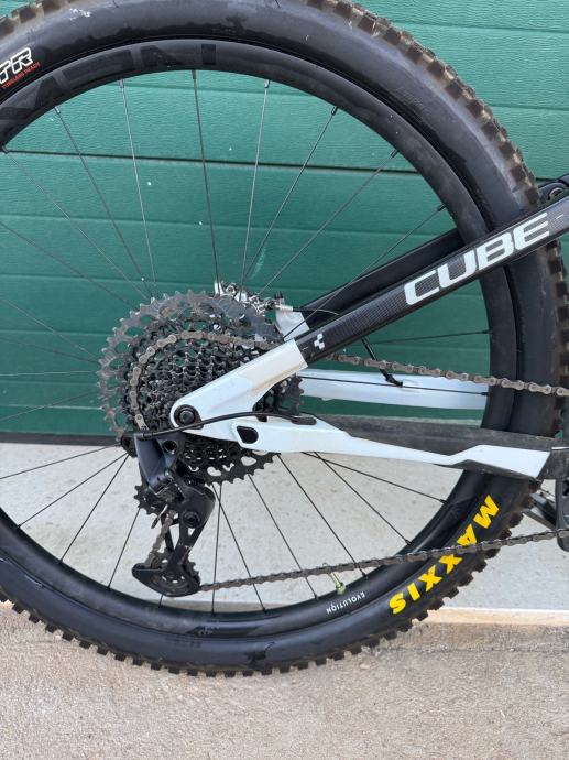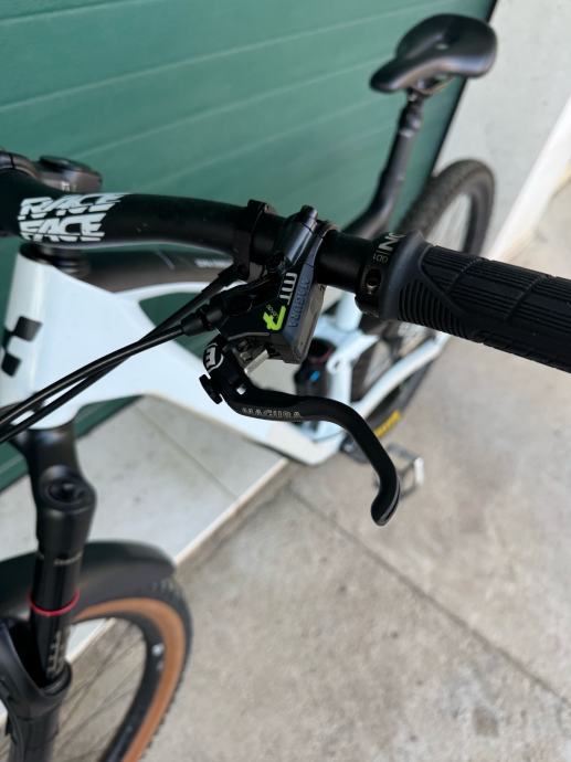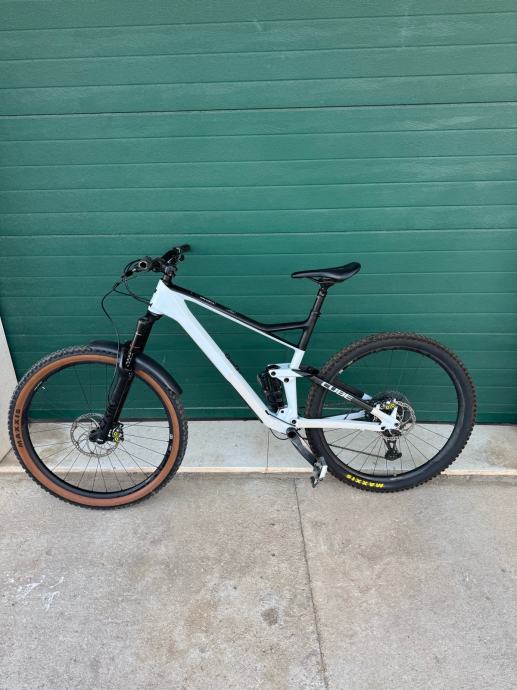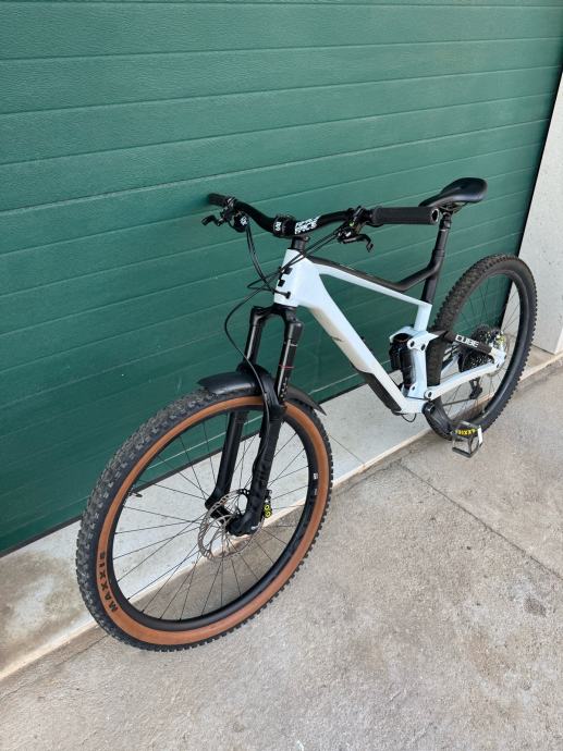 Prodajem Cube Stereo Race 150R, full suspension MTB bicikl u bijeloj boji s crnim detaljima. Radi se o muškoj geometriji rame veličine XL (53-57 cm), s kotačima od 29 inča.